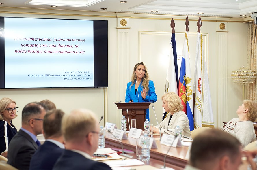 Модератором конференции и одним из докладчиков выступила член Комиссии ФНП по имиджу, взаимодействию со СМИ и общественными организациями, кандидат юридических наук, член правления Нотариальной палаты Омской области, нотариус г. Омска Ольга Владимировна Фрик. Ольга Владимировна в своем докладе подробно остановилась на обстоятельствах, которые устанавливаются нотариусом при совершении нотариального действия, не подлежат доказыванию в суде и признаются достоверными. Нотариус г. Омска подчеркнула, что важным вопросом для дальнейшего развития института обеспечения доказательств является соблюдение нотариусом процессуальных гарантий участников.